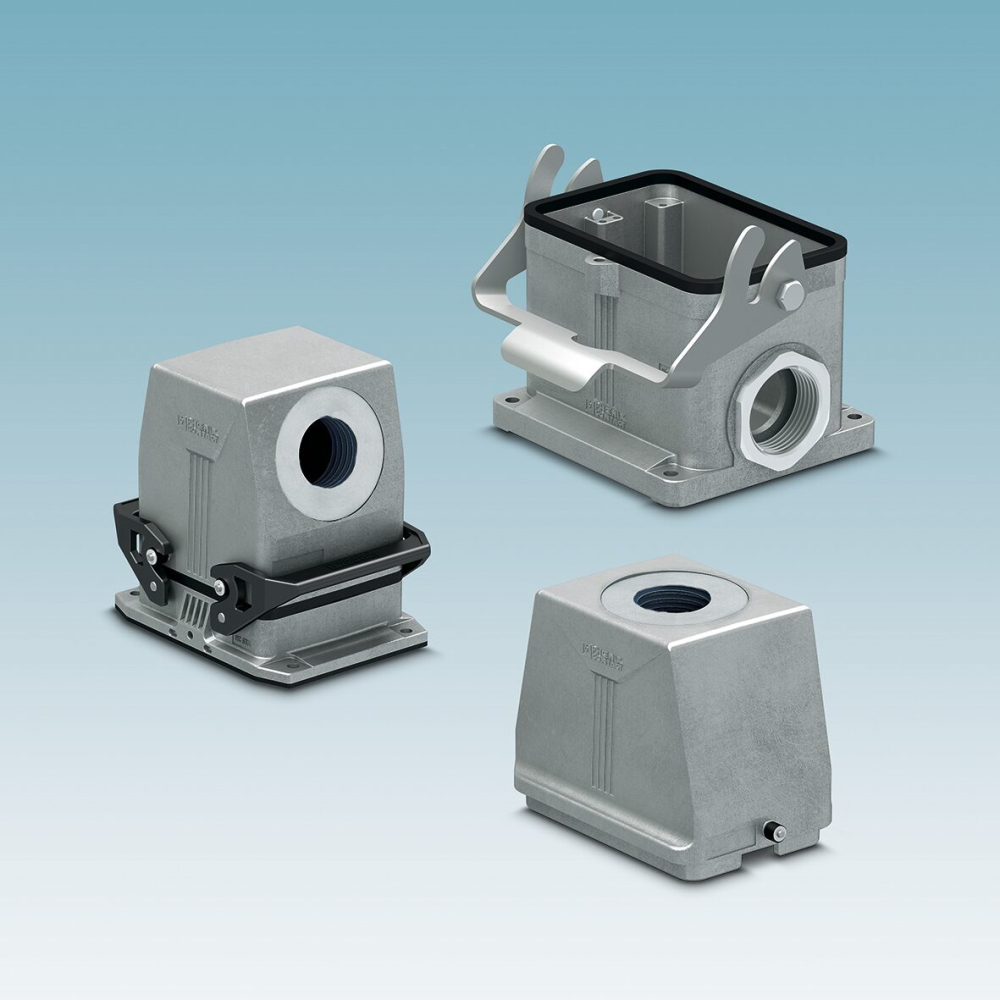 Las carcasas Heavycon Standard de Phoenix Contact se fabrican con aluminio de alta calidad y resistente a la corrosión. Gracias a su superficie conductora y a sus juntas, también son adecuadas para aplicaciones EMC.